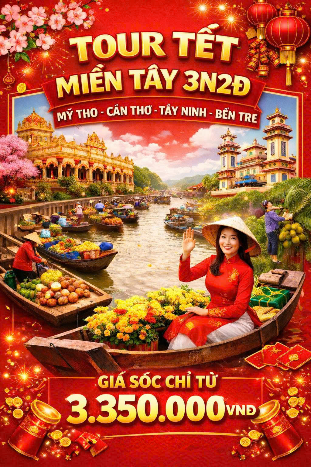 MỸ THO – BẾN TRE – CẦN THƠ – CỒN SƠN – SÀI GÒN – TÂY NINH – NÚI BÀ ĐEN –ĐỈNH VÂN SƠN 3N2Đ